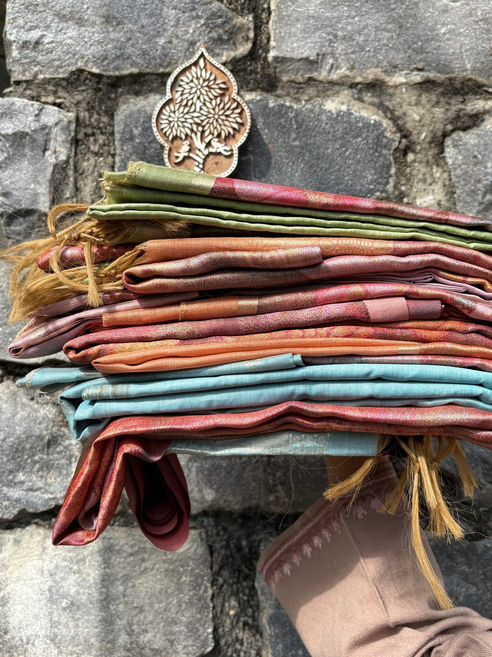 Unstitched Salwar Kameez Collection on Woven (not printed) Pure natural fibre Chanderi by Ikhtirah.