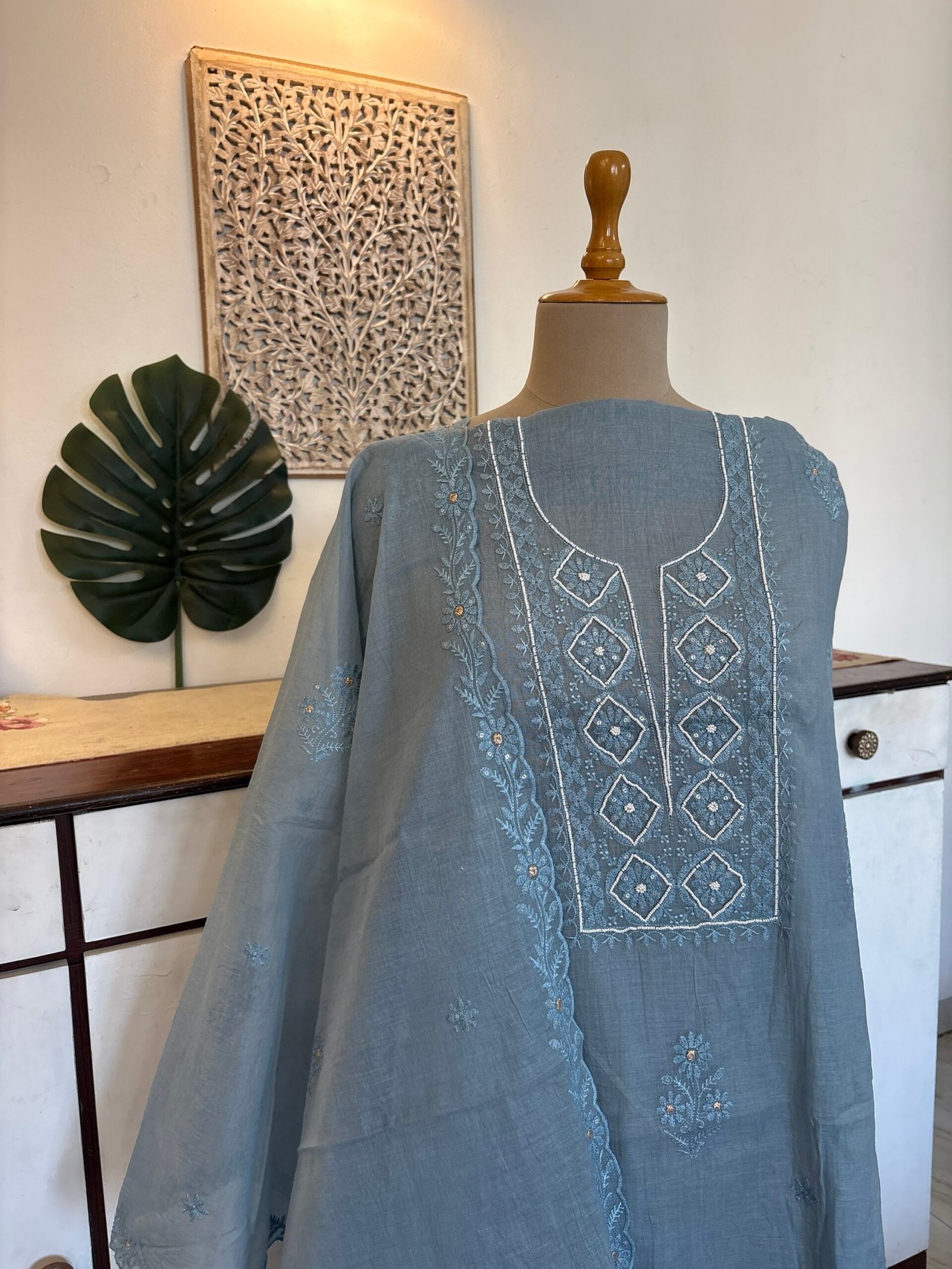 Kameez: Soft Mul Chanderi with Hand Highlights of moti