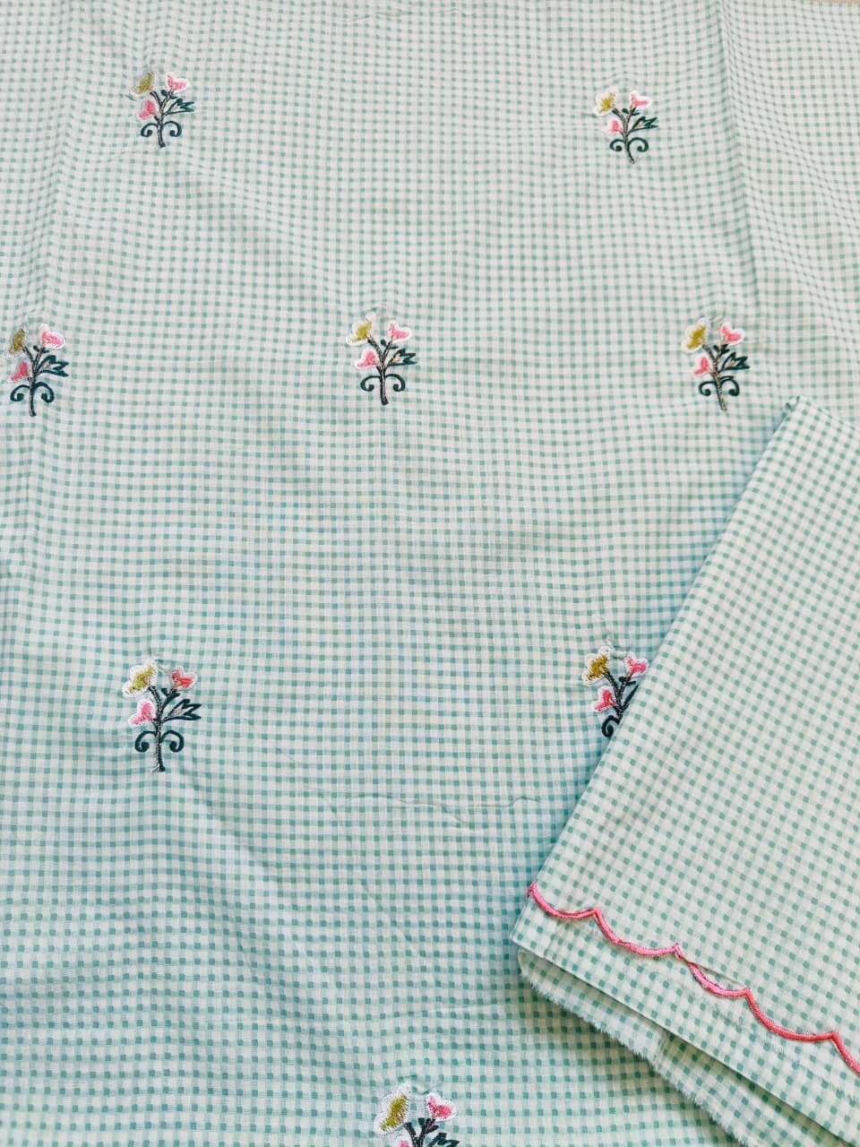 Unstitched Pure Cotton Manual Machine Embroidered Co-ord Fabric by Ikhtirah