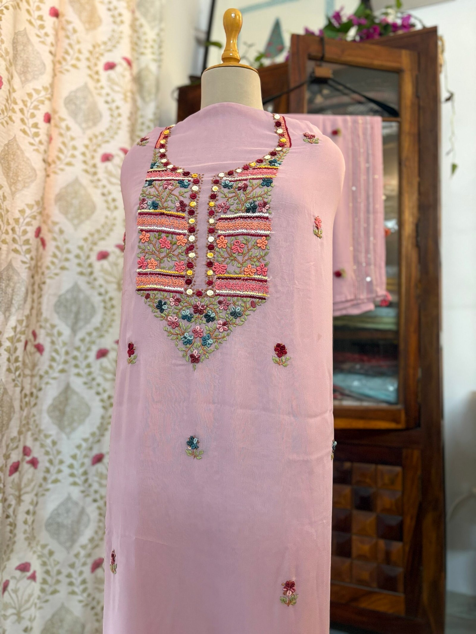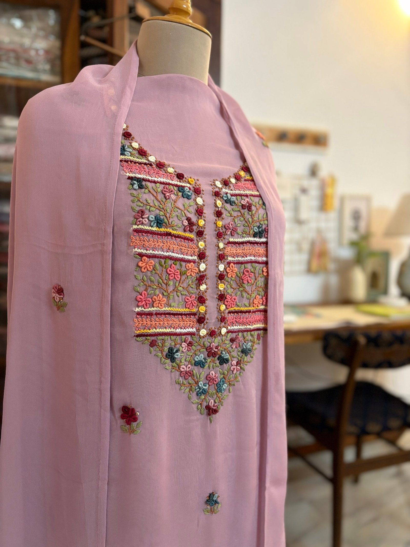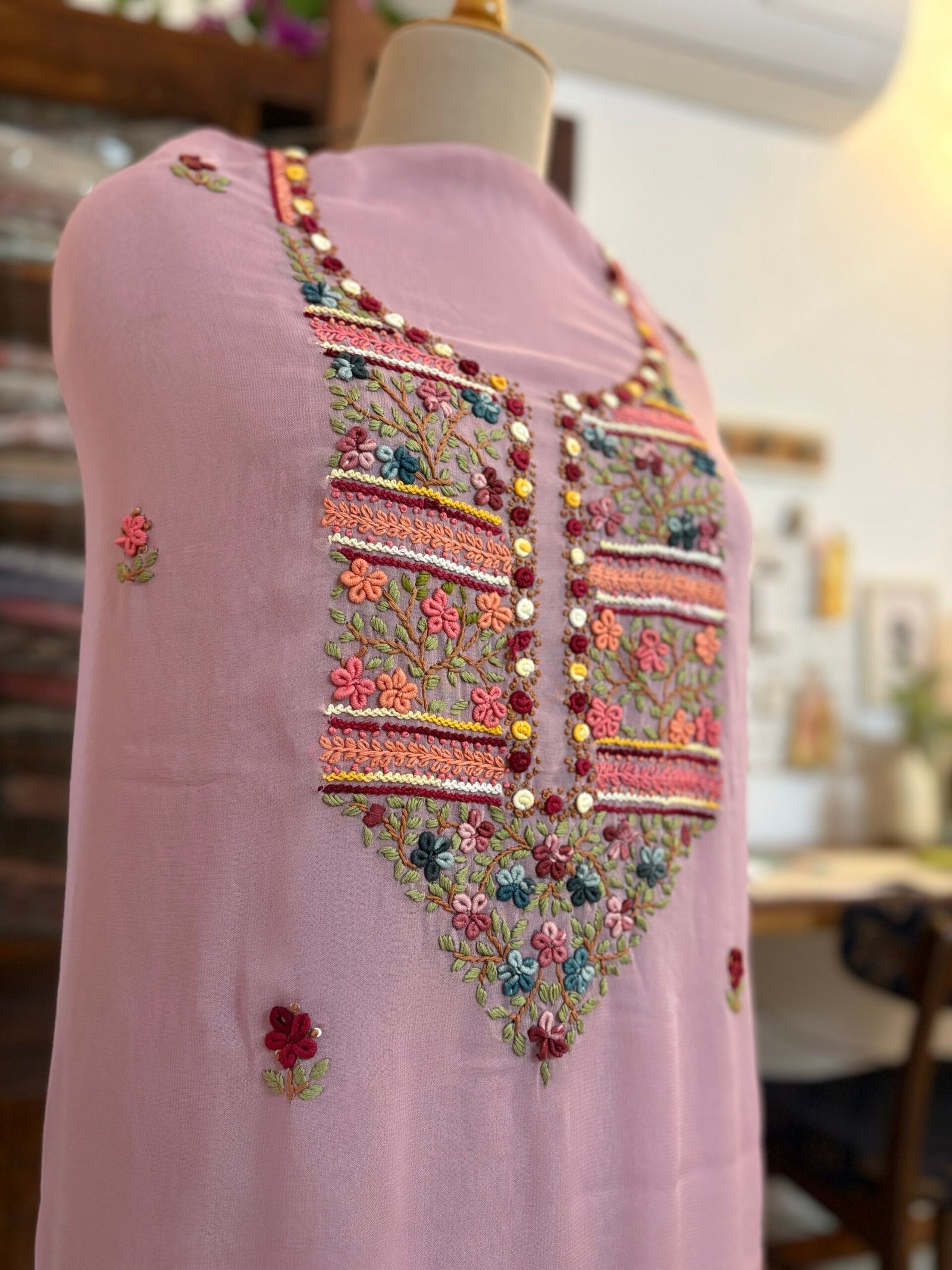 Kameez: Hand Knot Work Embroidered Gorgette