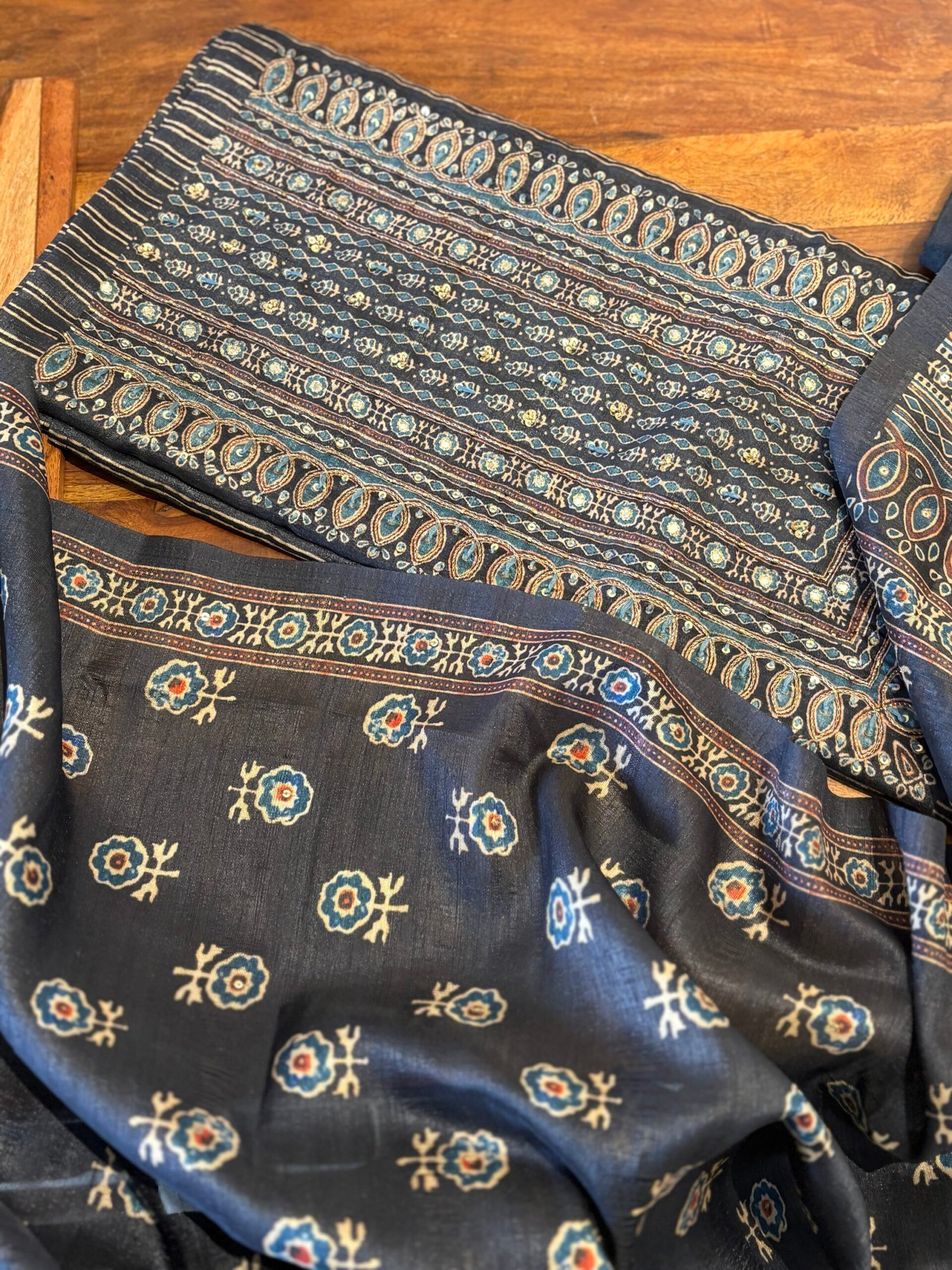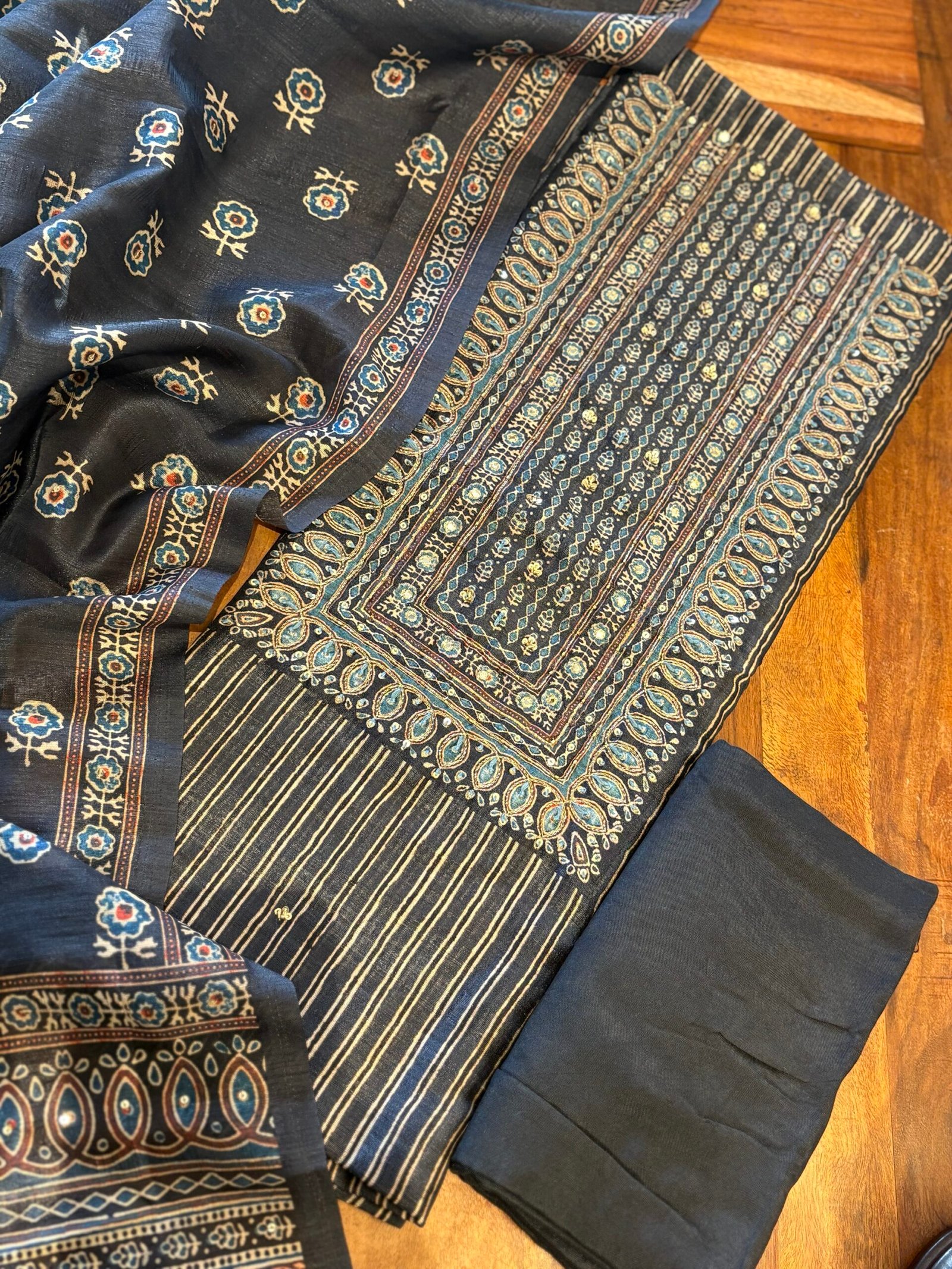Unstitched Salwar Kameez Collection on Handworked Semi Tusser Silk Salwars by Ikhtirah