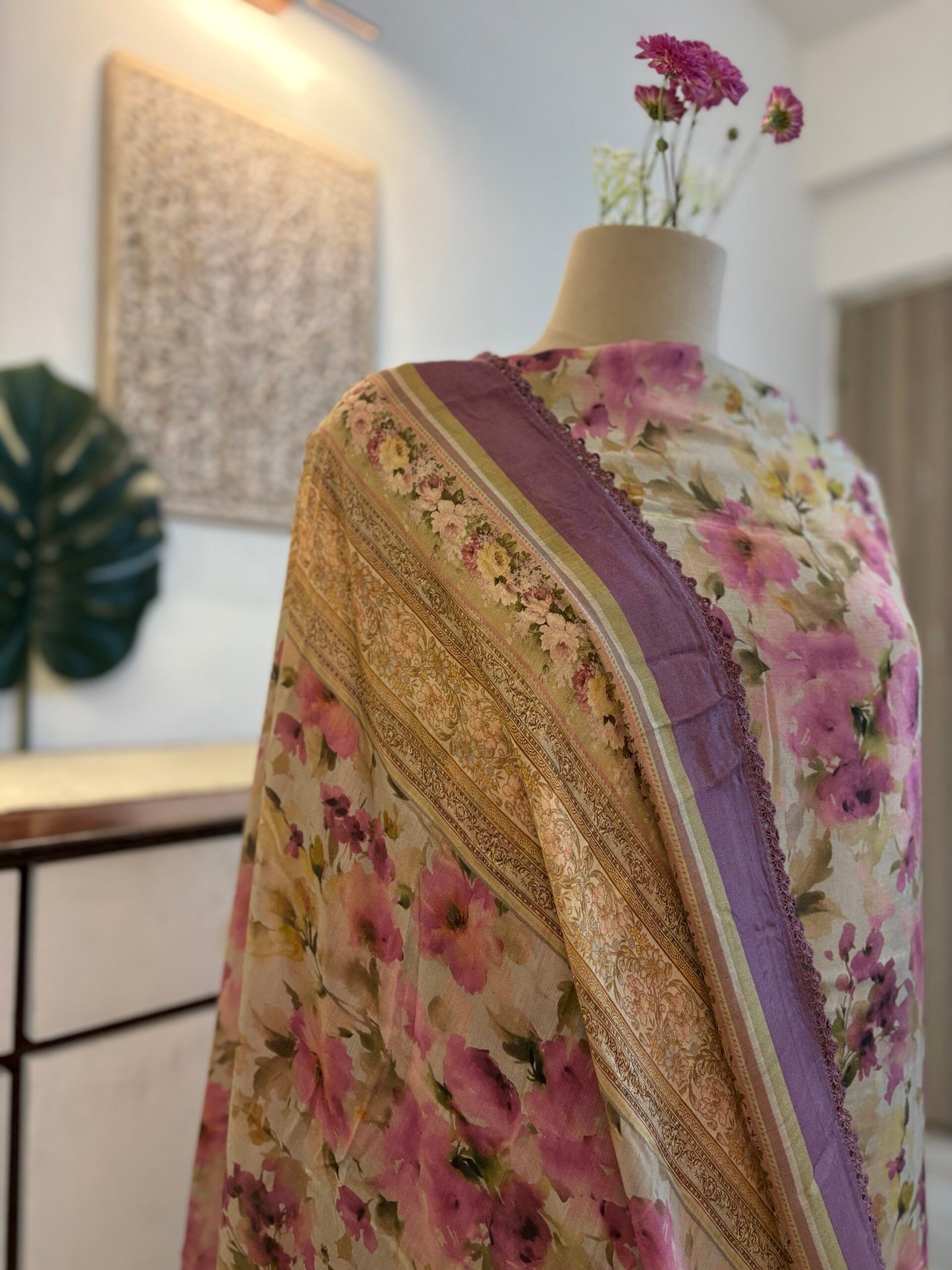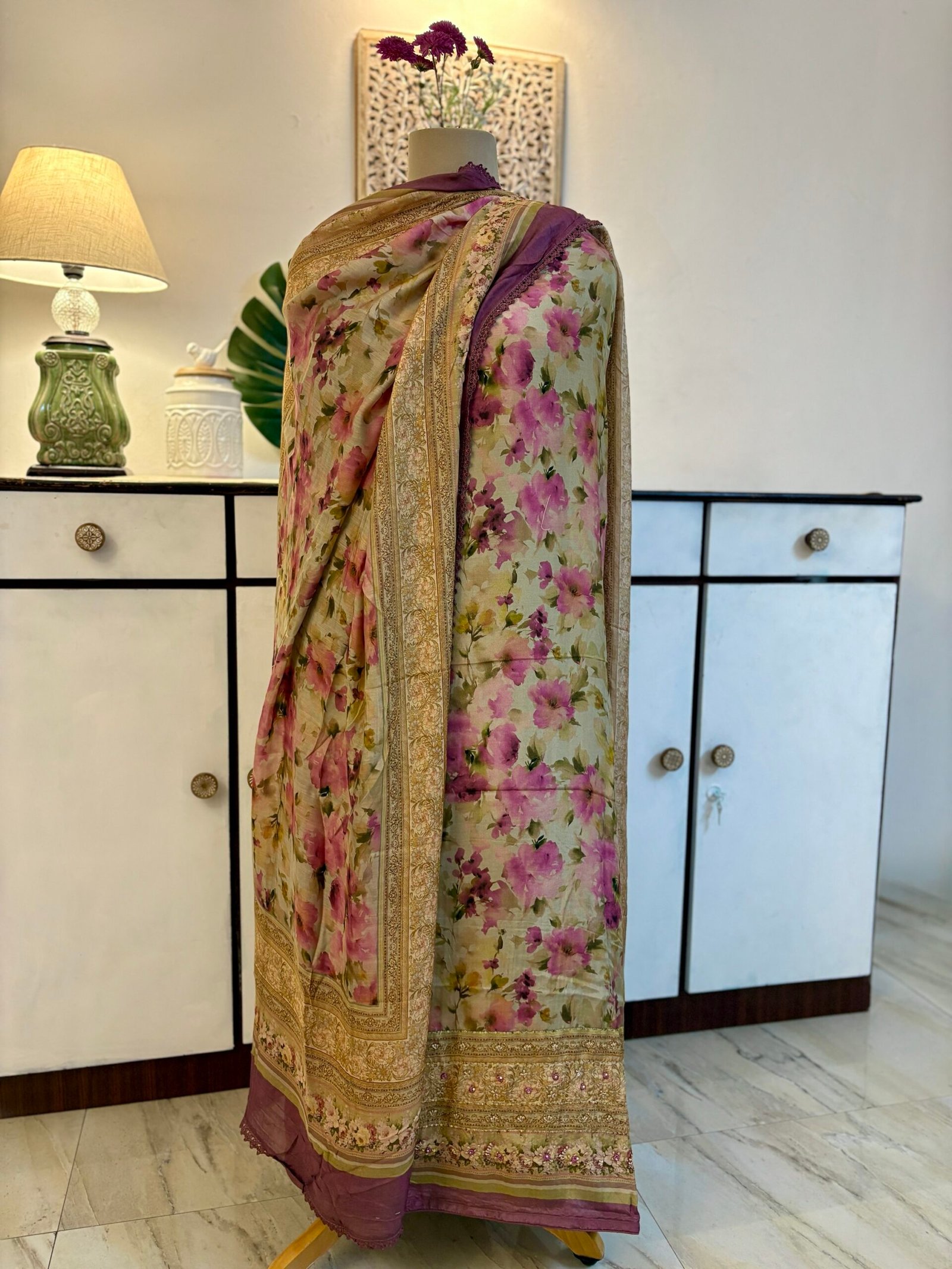 Unstitched Salwar Kameez Collection : Handworked (Daaman) Muslin Silk Salwars by Ikhtirah