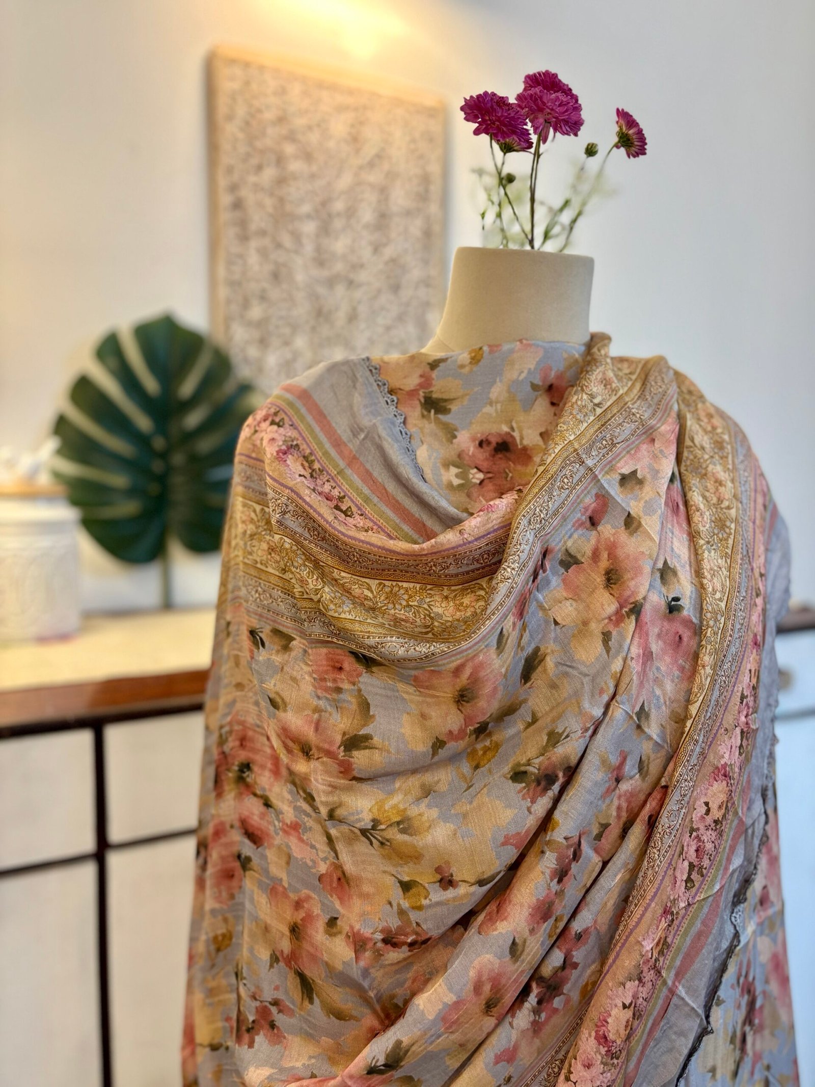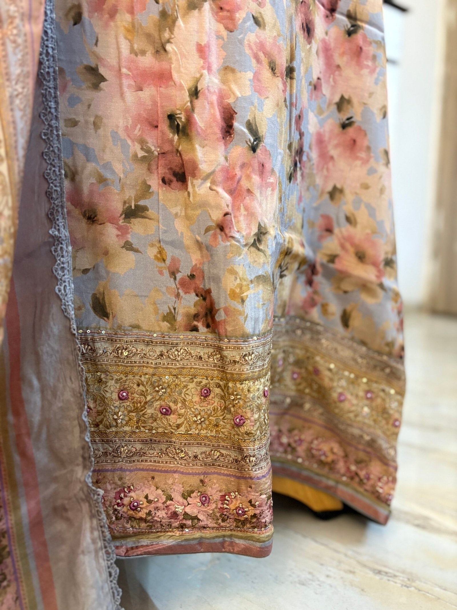 Unstitched Salwar Kameez Collection : Handworked (Daaman) Muslin Silk Salwars by Ikhtirah