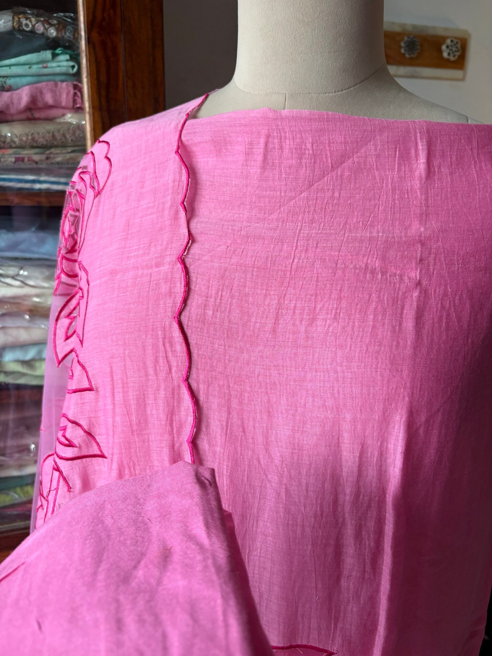 Unstitched Salwar Kameez Collection on Pure Chanderi Mul with Cutwork by Ikhtirah.