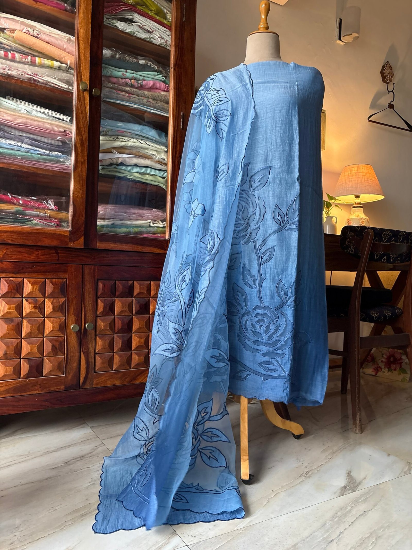 Unstitched Salwar Kameez Collection on Pure Chanderi Silk Mul with Cutwork by Ikhtirah.