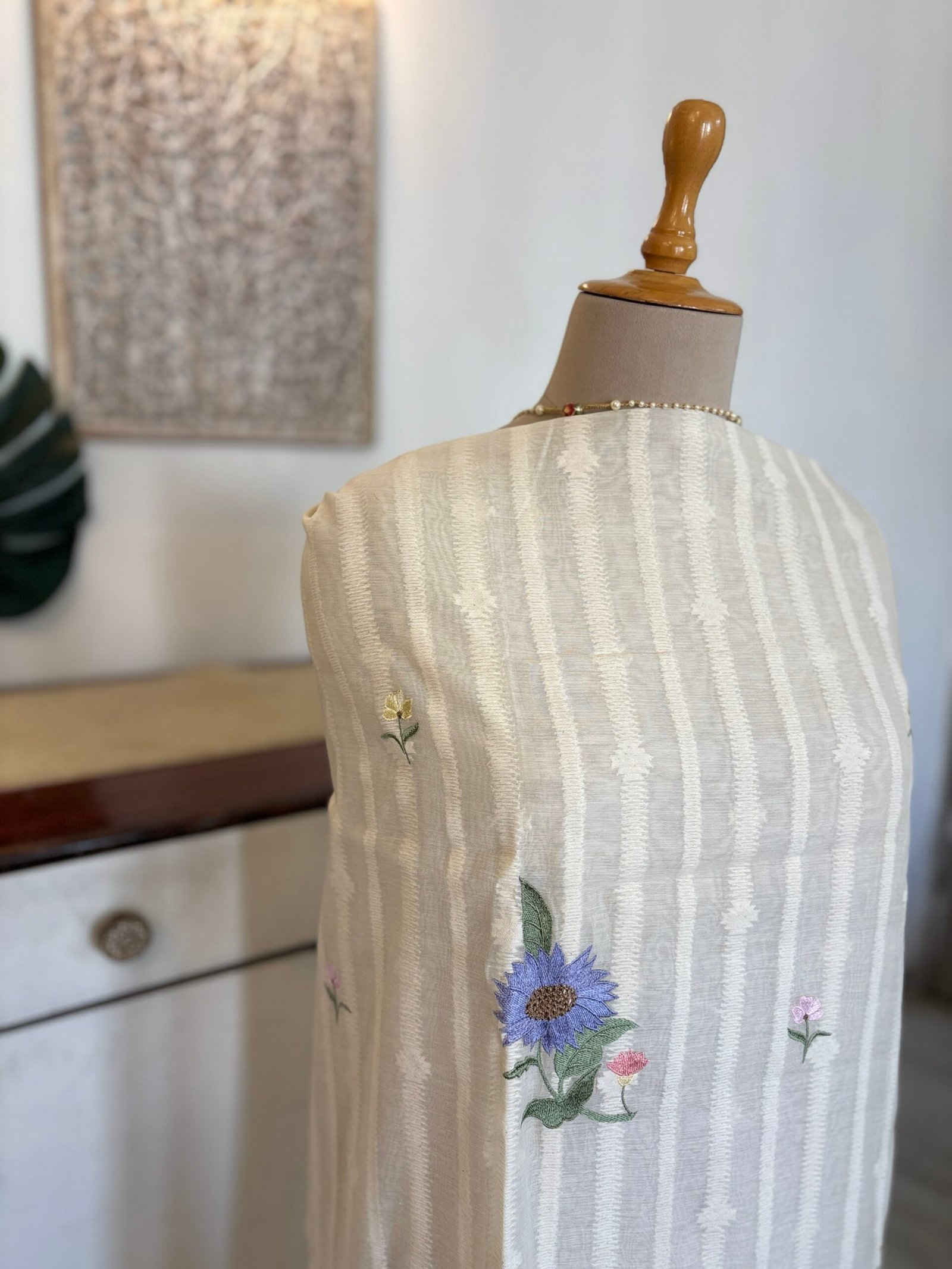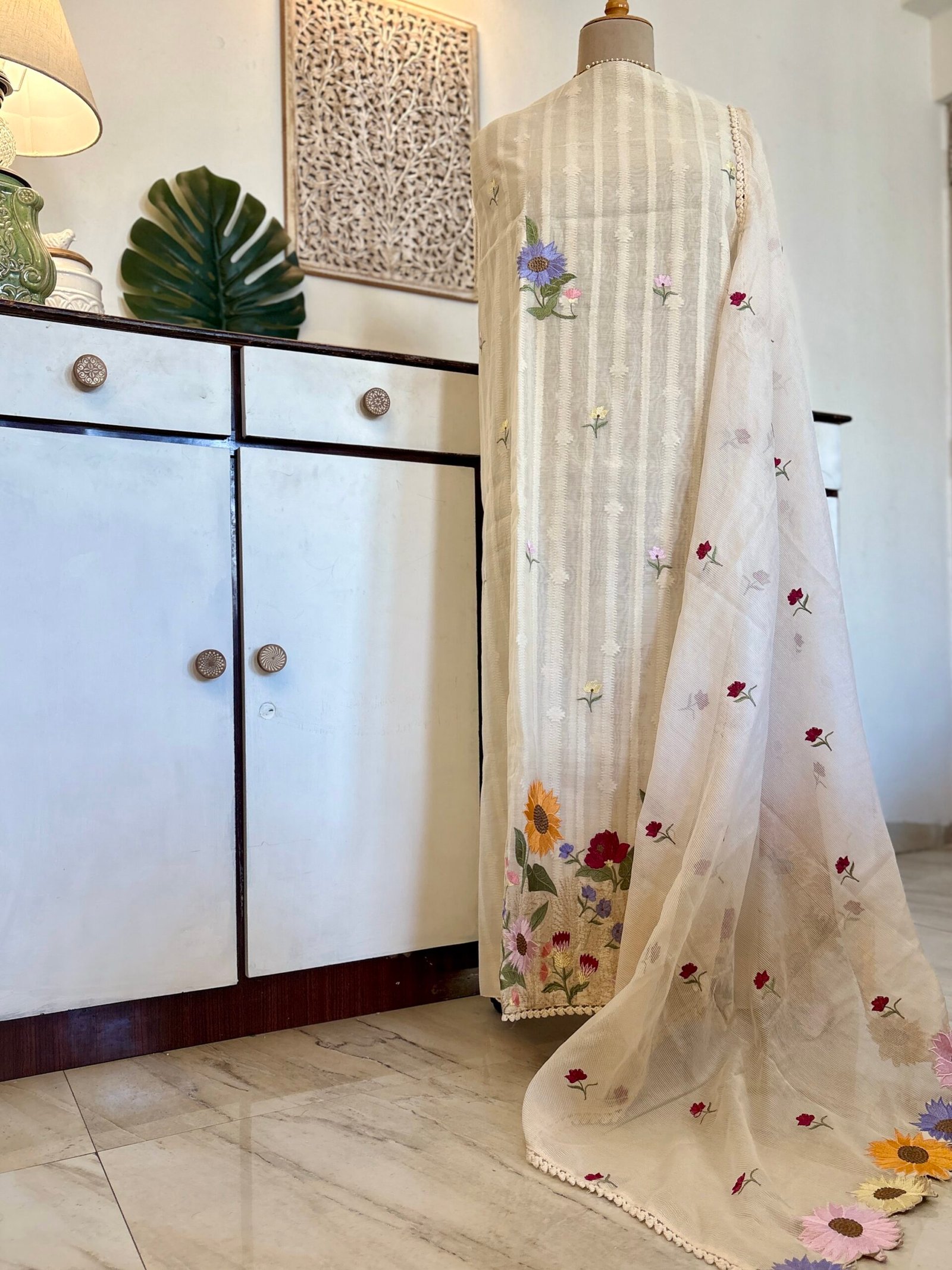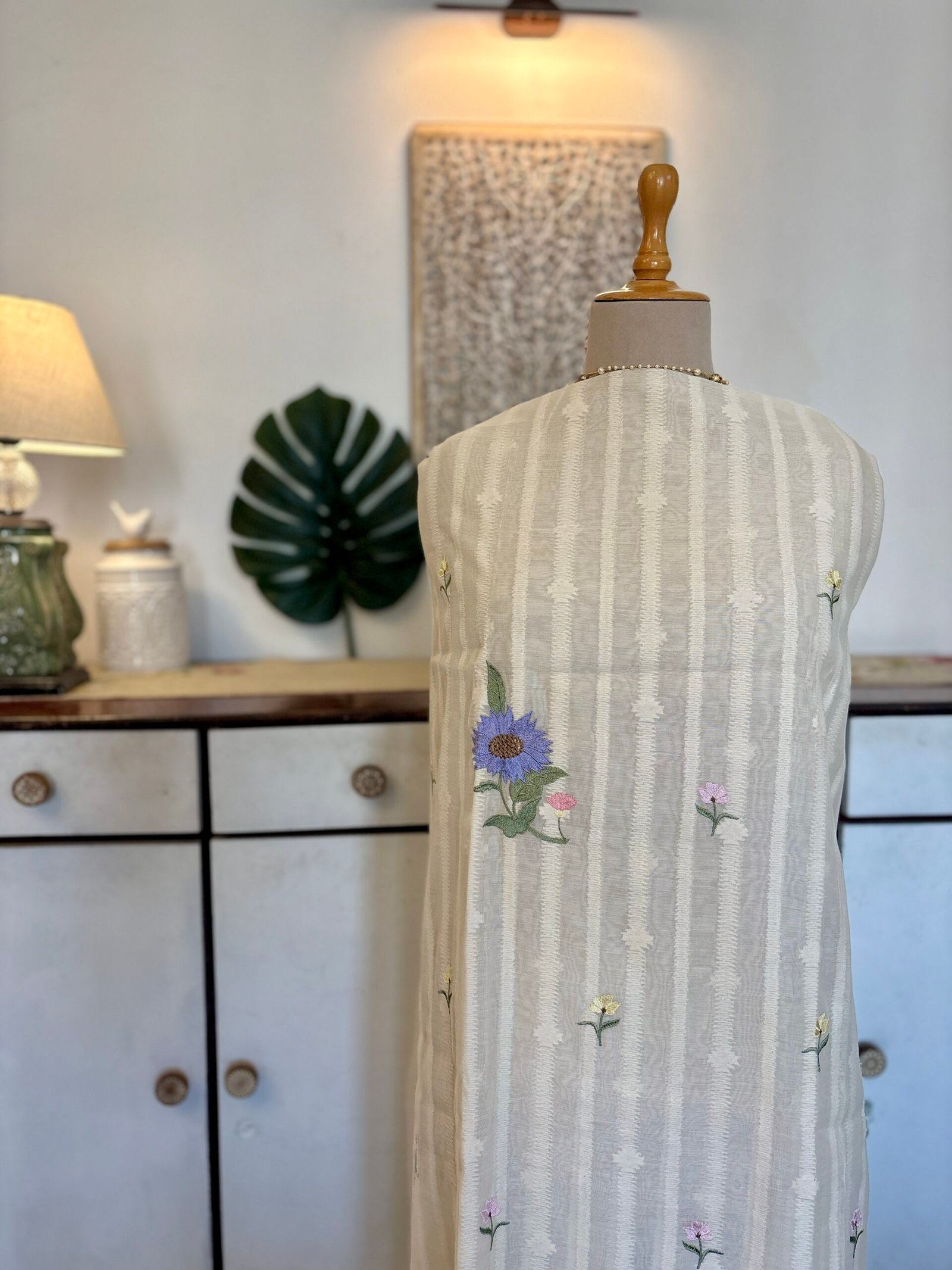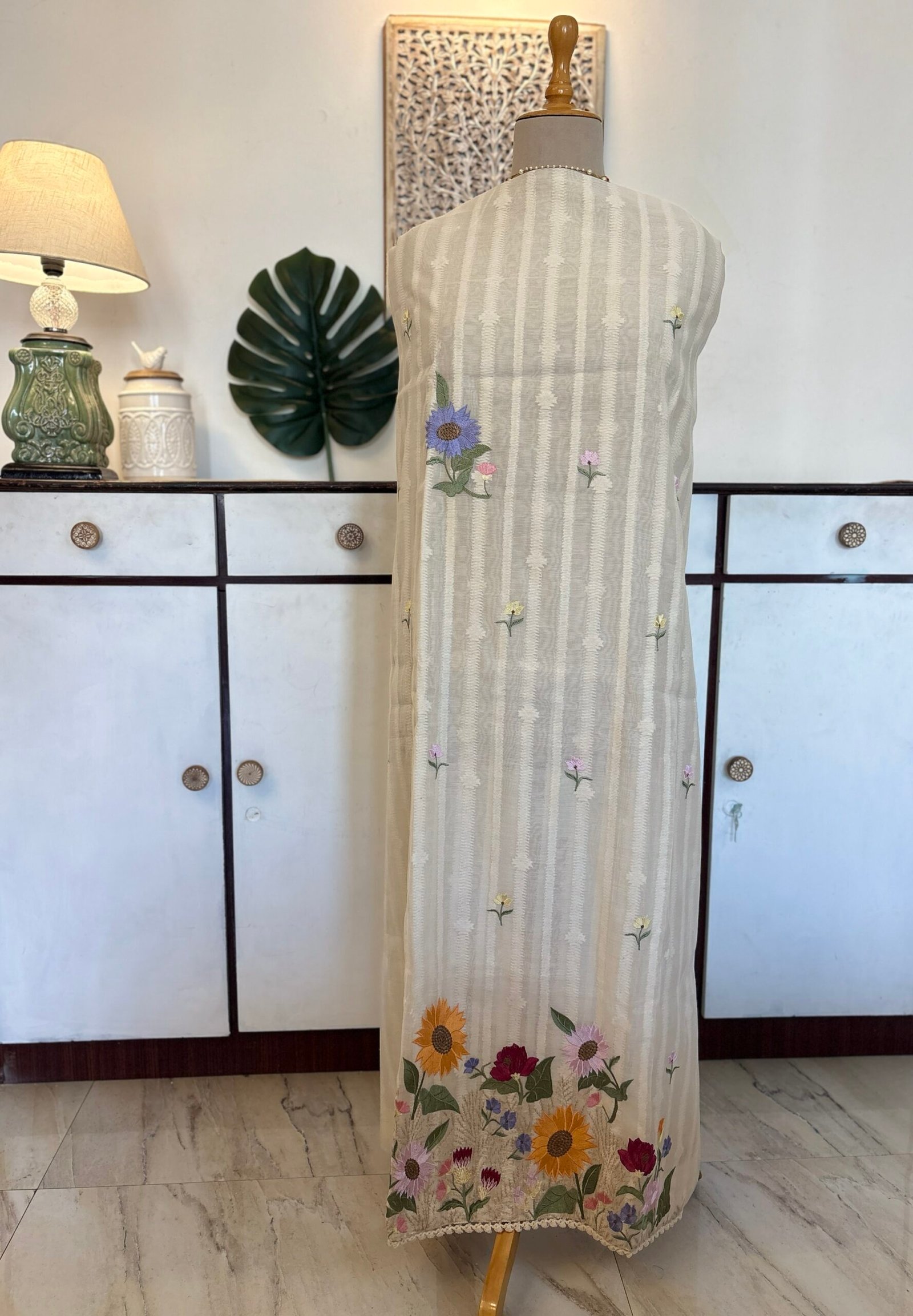 Unstitched Salwar Kameez Collection Embroidered Floral Pure Cotton Mul Salwar by Ikhtirah