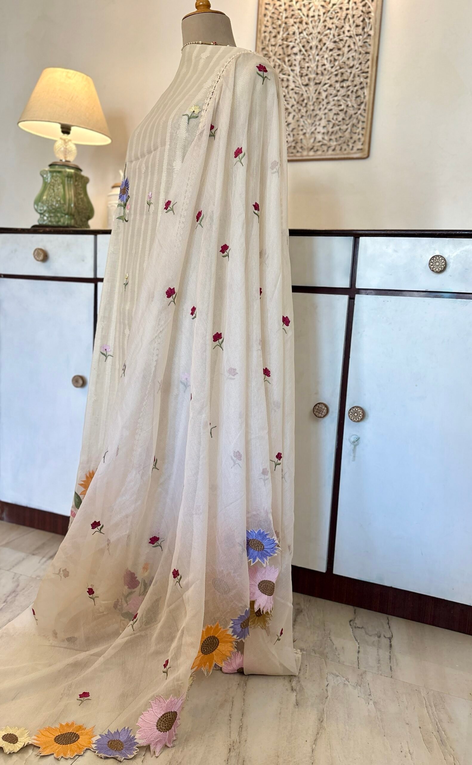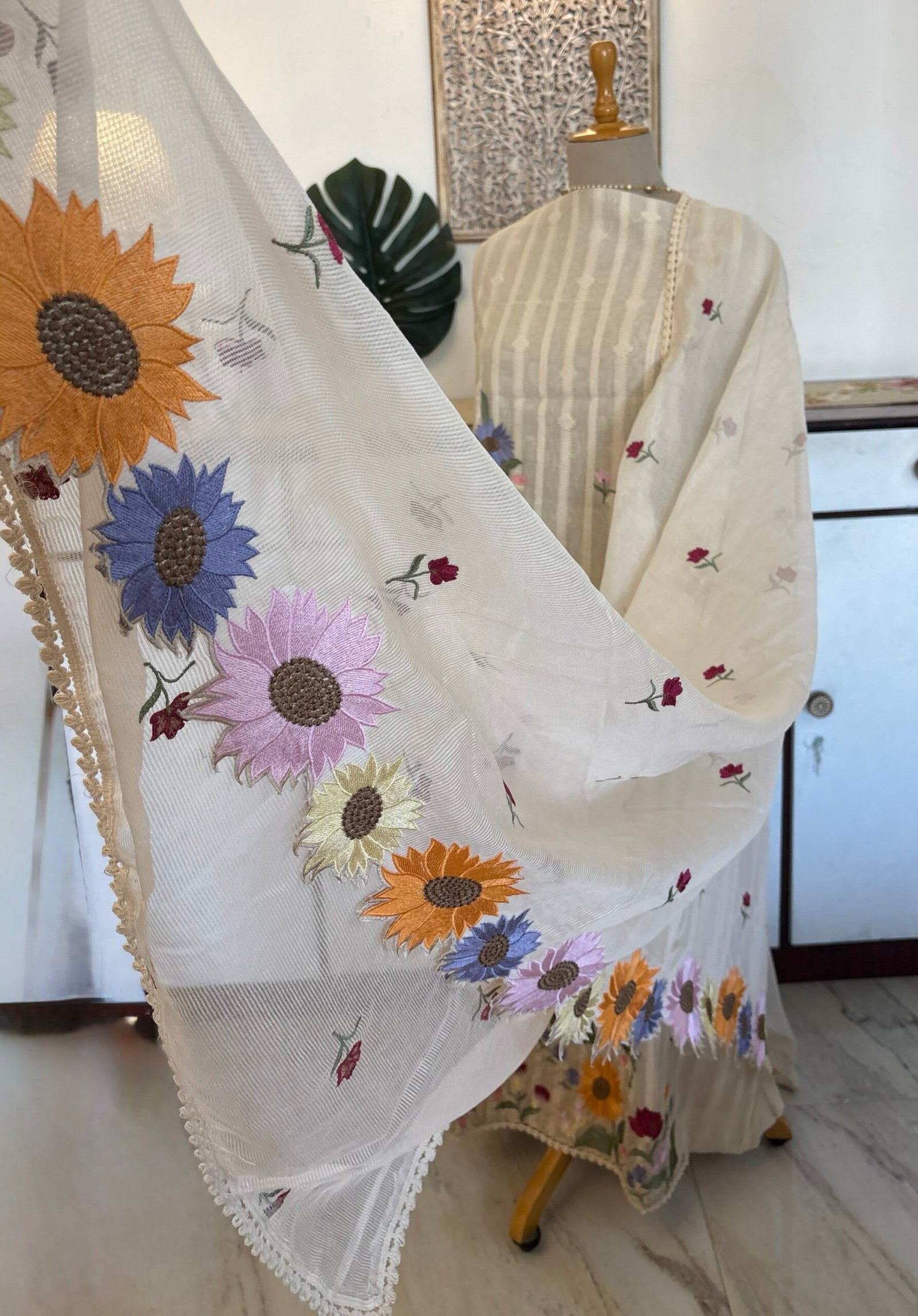 Dupatta: Embroidered Net with Lace