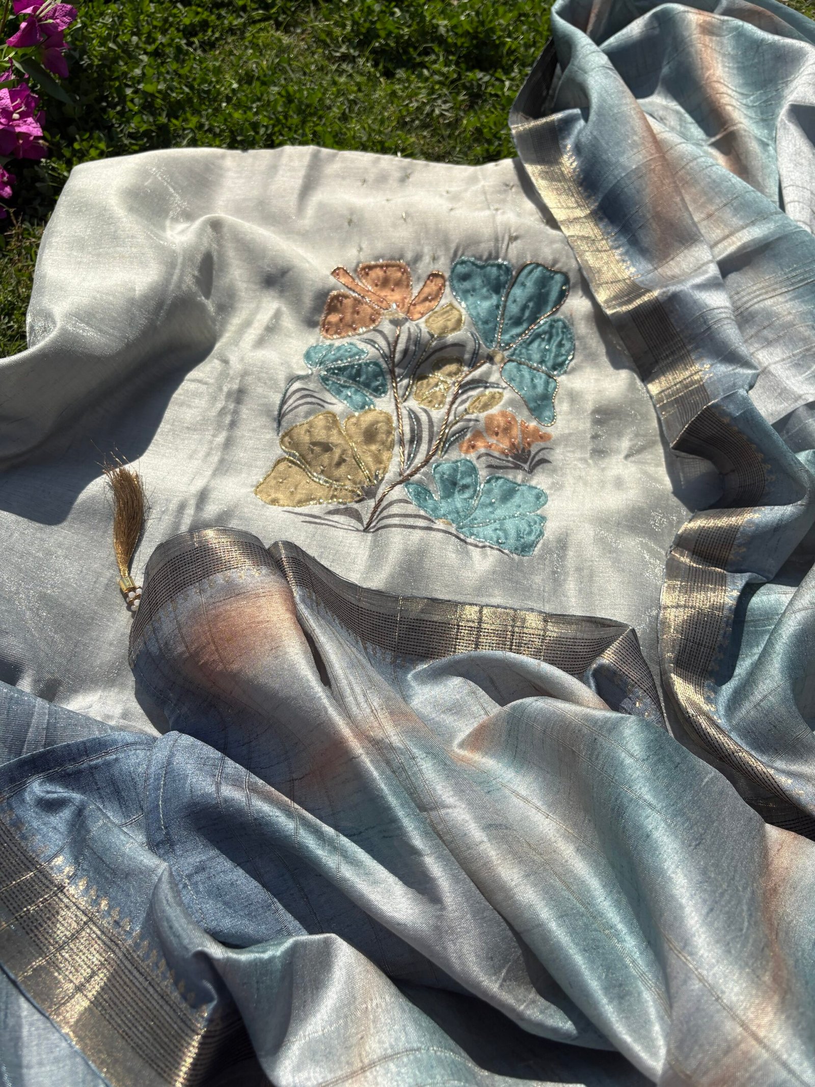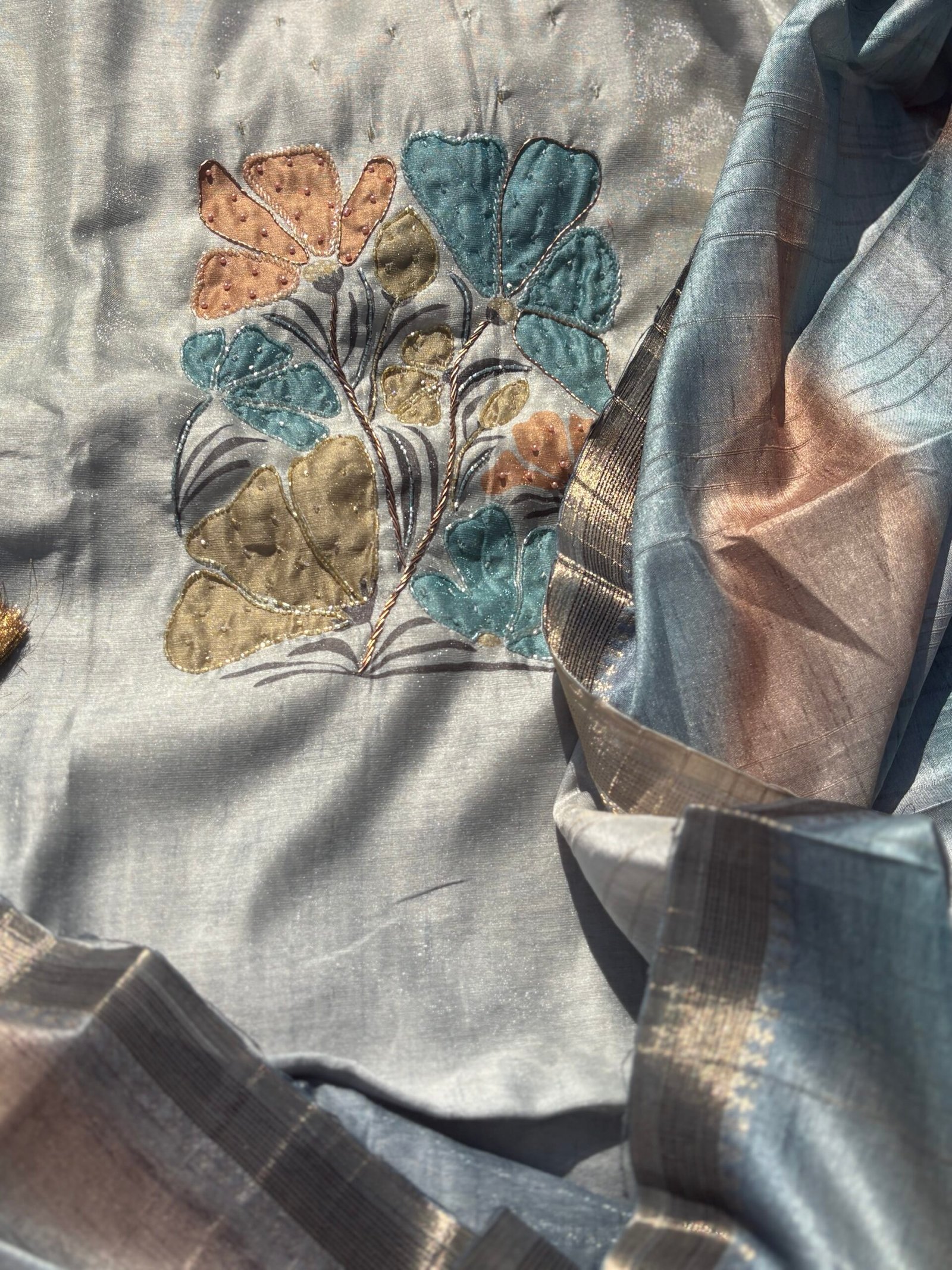 Unstitched Shimmer Jamdaani Silk Salwars with handwork by Ikhtirah Salwars